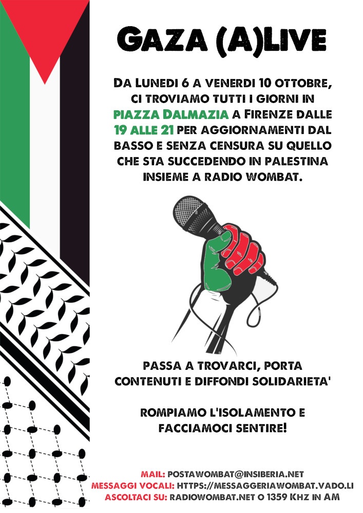 Da lun 06/10 a ven 10/10 in Pz Dalmazia – Radio Wombat – Gaza (A)live